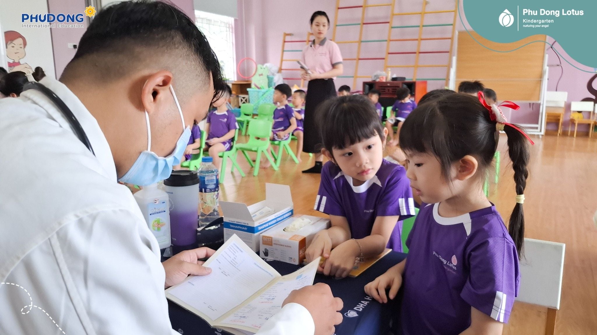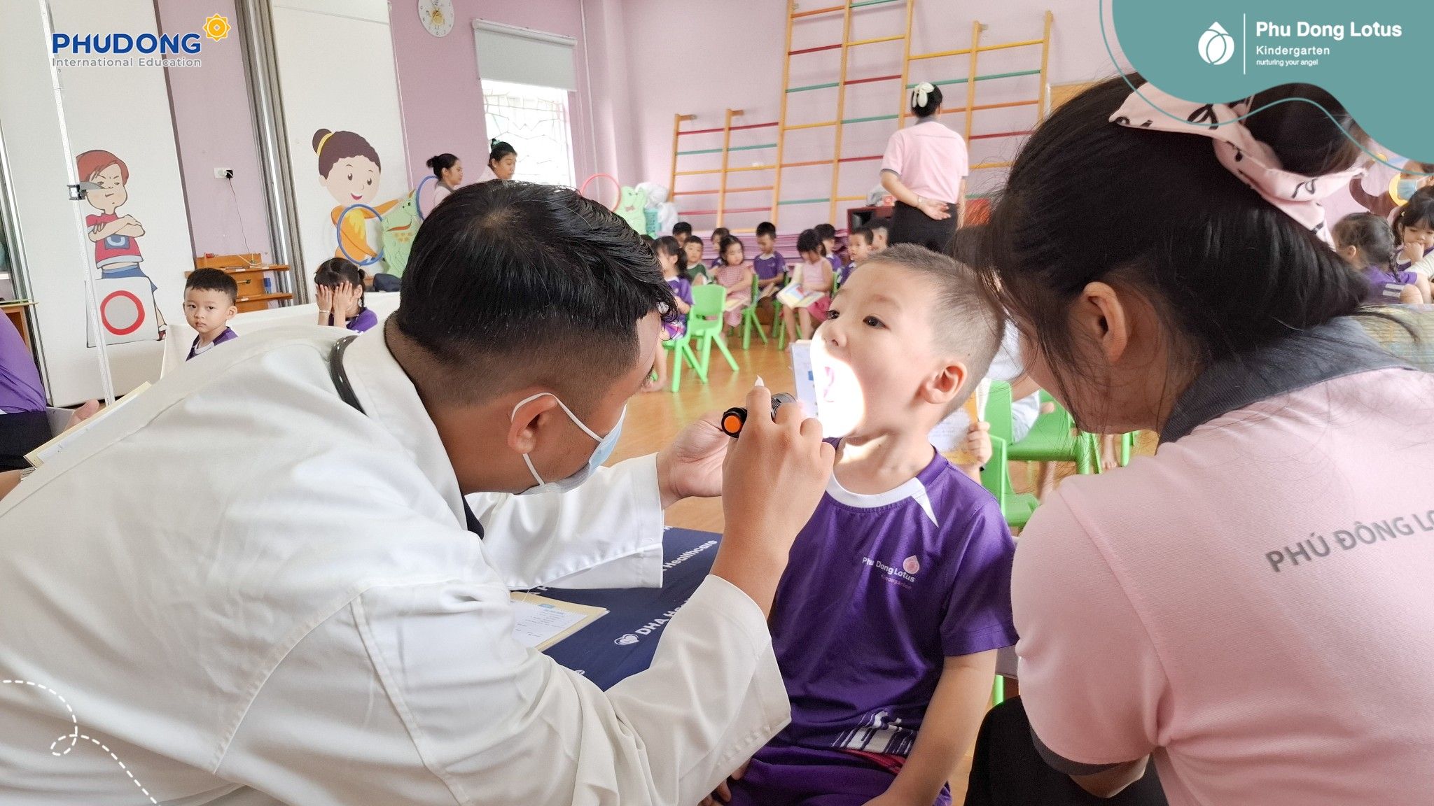 Cứ thế, các bạn nhỏ Phu Dong Lotus Kindergarten đã bước vào một hành trình khám sức khỏe thật đặc biệt ngay tại trường.