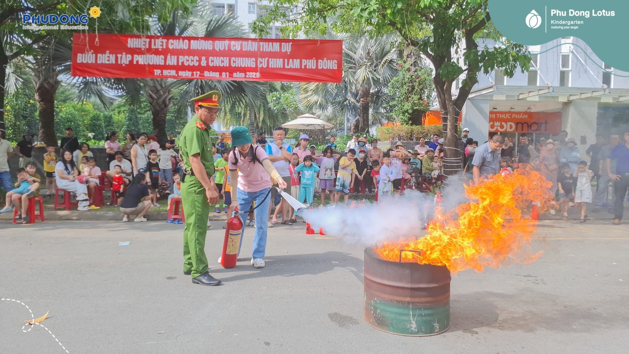 Hôm nay, đội ngũ thầy cô Phú Đông Lotus đã cùng tham gia buổi Tuyên truyền, trải nghiệm và thực hành phòng cháy chữa cháy – cứu nạn cứu hộ tại Khu dân cư Him Lam Phú Đông. Buổi tập huấn do Phòng Cảnh sát PCCC & CNCH – Công an TP.HCM trực tiếp tổ chức và hướng dẫn.